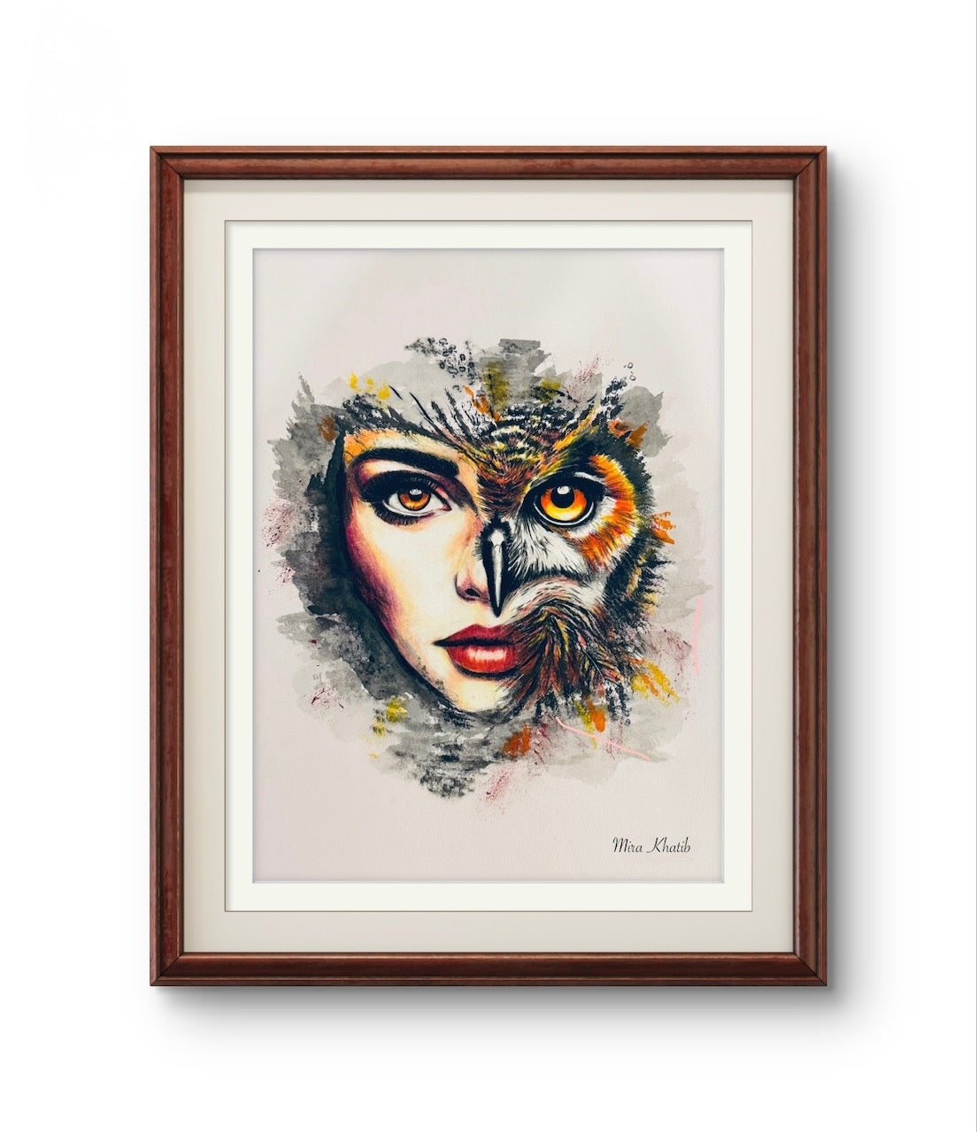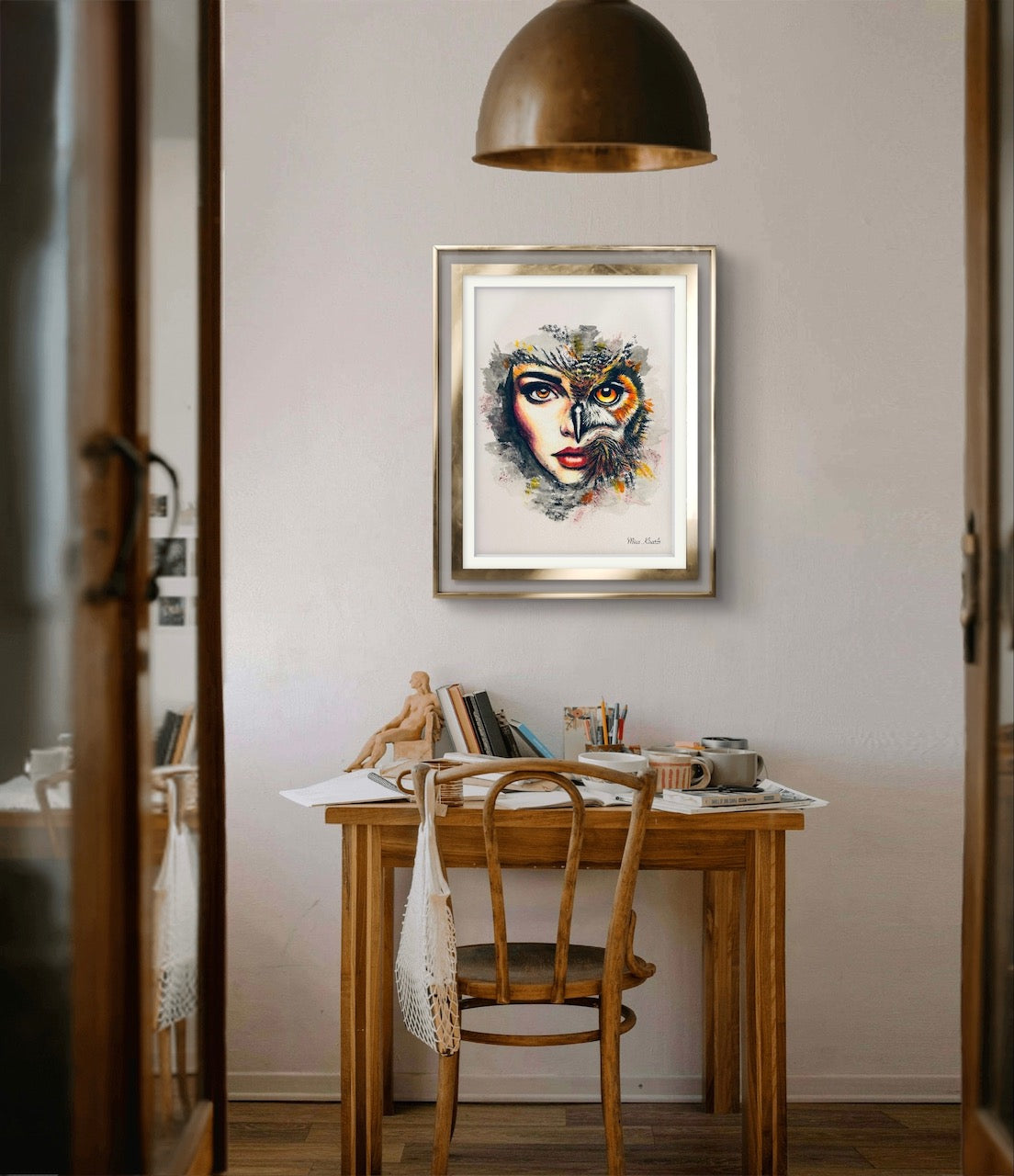 She Owl - There is a wild strength within every woman, a quiet force that sees, endures, and rises. The Owl is the first artwork in my new series, The Wild, where I explore the deep connection between feminine resilience and nature’s wisdom.